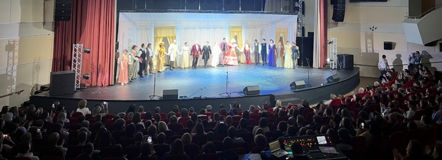 А на сцене двери домов распахнулись и перед зрителями предстал уклад жизни москвичей 19 века в круговороте героев классической комедии А.С.Грибоедова.
